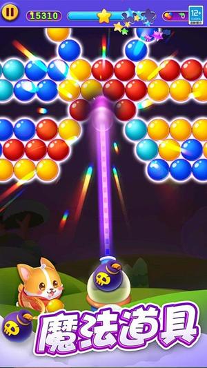 2、魔法道具丰富多样,随意点击即可使用,例如炸弹泡泡、变色泡泡、全屏消除等,能帮助玩家快速扭转局势完成高难度挑战。