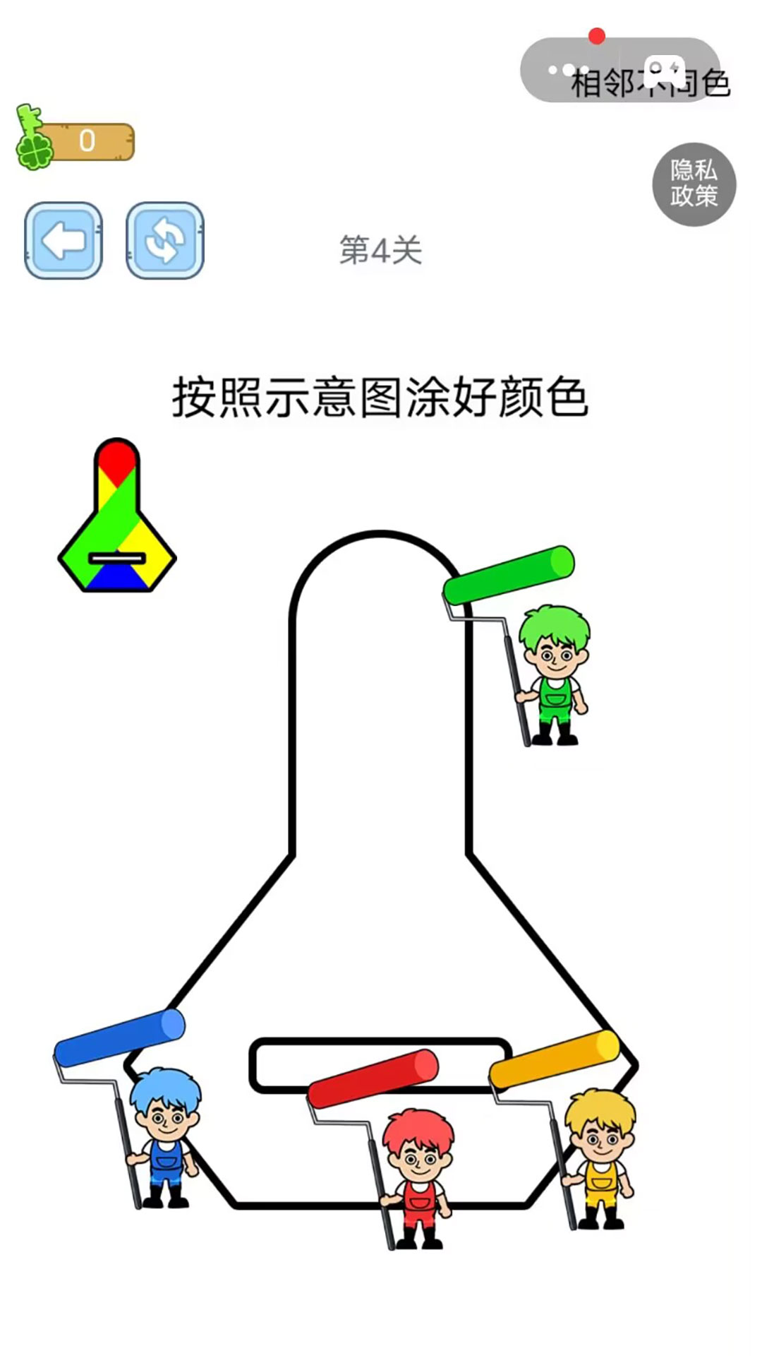 2、设置难度递进关卡,从简单的单一图案涂色,到复杂的多图案联动涂色,不断提升推理挑战。